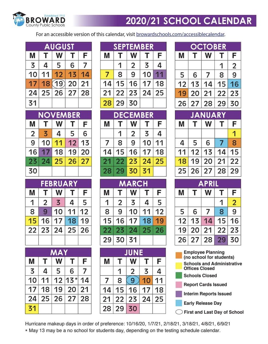 Official 2020 21 Broward County Public Schools Color Calendar